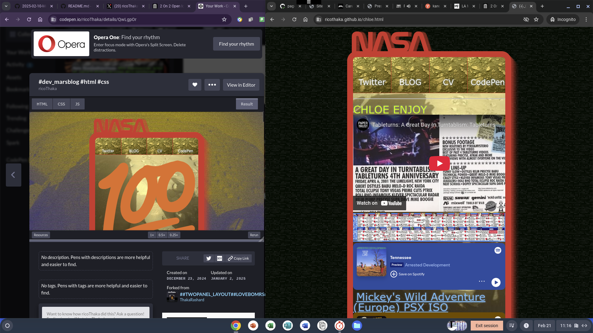 [Firstlayout](https://ricothaka.github.io/chloe.html) b4 [Leap Day](https://github.com/pages-themes/leap-day) it was a lot of modding of [pages-themes hacker](https://github.com/pages-themes/hacker) i did so well with [ThakaRashard](https://thakarashard.github.io/) stability wise I knew that was the logical move for my [LinkediN_Replacement](https://thakarashard.github.io/rashardmro/) for general iDentification Online ... [my HomePage](https://thakarashard.github.io/rashardmro/) ### Mars Mission Objectives [MArs Reconnocinse Orbiter](https://hirise-pds.lpl.arizona.edu/PDS/CATALOG/MISSION.CAT) [Laila's Wisdom re:coral @blackgirlscode](https://youtu.be/btYlWphnfbE) [WipEout®...